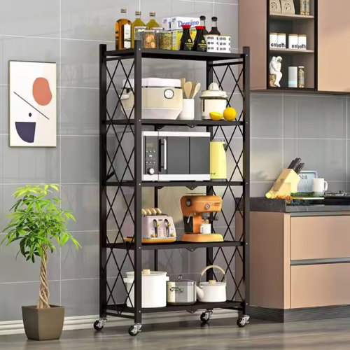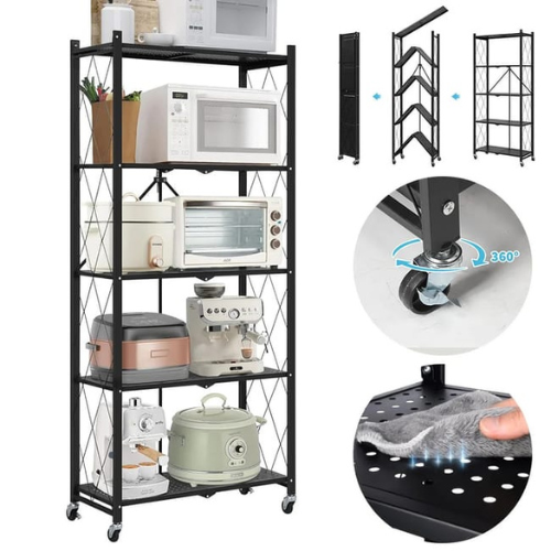 Dile adiós al desorden y aprovecha cada rincón de tu hogar con este estante metálico de 5 niveles plegable con ruedas. Su diseño moderno y funcional lo convierte en el aliado perfecto para mantener todo en orden sin perder elegancia.