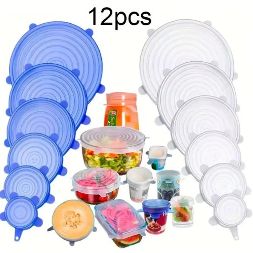 Mantén tus alimentos frescos y organizados con nuestro set de tapas de siliconas reutilizables. Diseñadas para ajustarse perfectamente a cualquier recipiente, estas tapas son la solución práctica y ecológica que necesitas en tu cocina. Su material de silicona flexible y duradero garantiza un sellado hermético que conserva la frescura de tus alimentos por más tiempo, evitando derrames y contaminaciones.