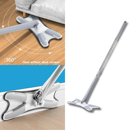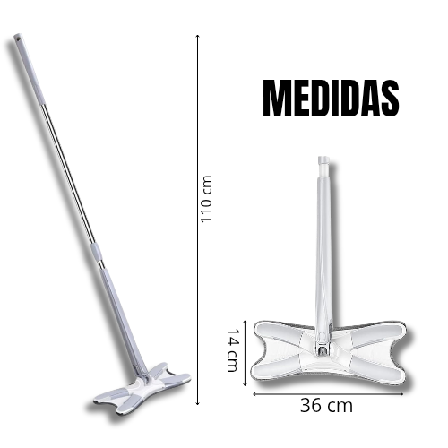El cabezal giratorio en 360° y el diseño en forma de X hacen que sea fácil de manejar alrededor de áreas difíciles de alcanzar. Además, cuenta con un mango de acero extra largo de 140 cm y un diseño delgado que le da al trapeador un fácil acceso a espacios estrechos como huecos o ranuras debajo de la cama o entre los sofás.