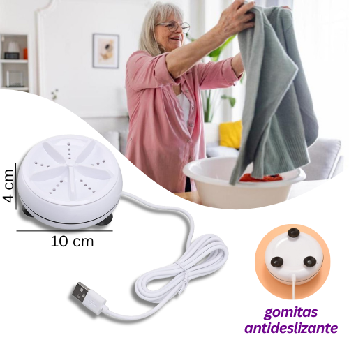 Este innovador mini lavador es la solución perfecta para quienes necesitan lavar ropa de forma práctica, rápida y sin esfuerzo. Su diseño compacto c con una turbina de alta potencia, inspirada en la tecnología de las lavadoras, que genera movimientos giratorios eficaces para eliminar suciedad, manchas y bacterias.
